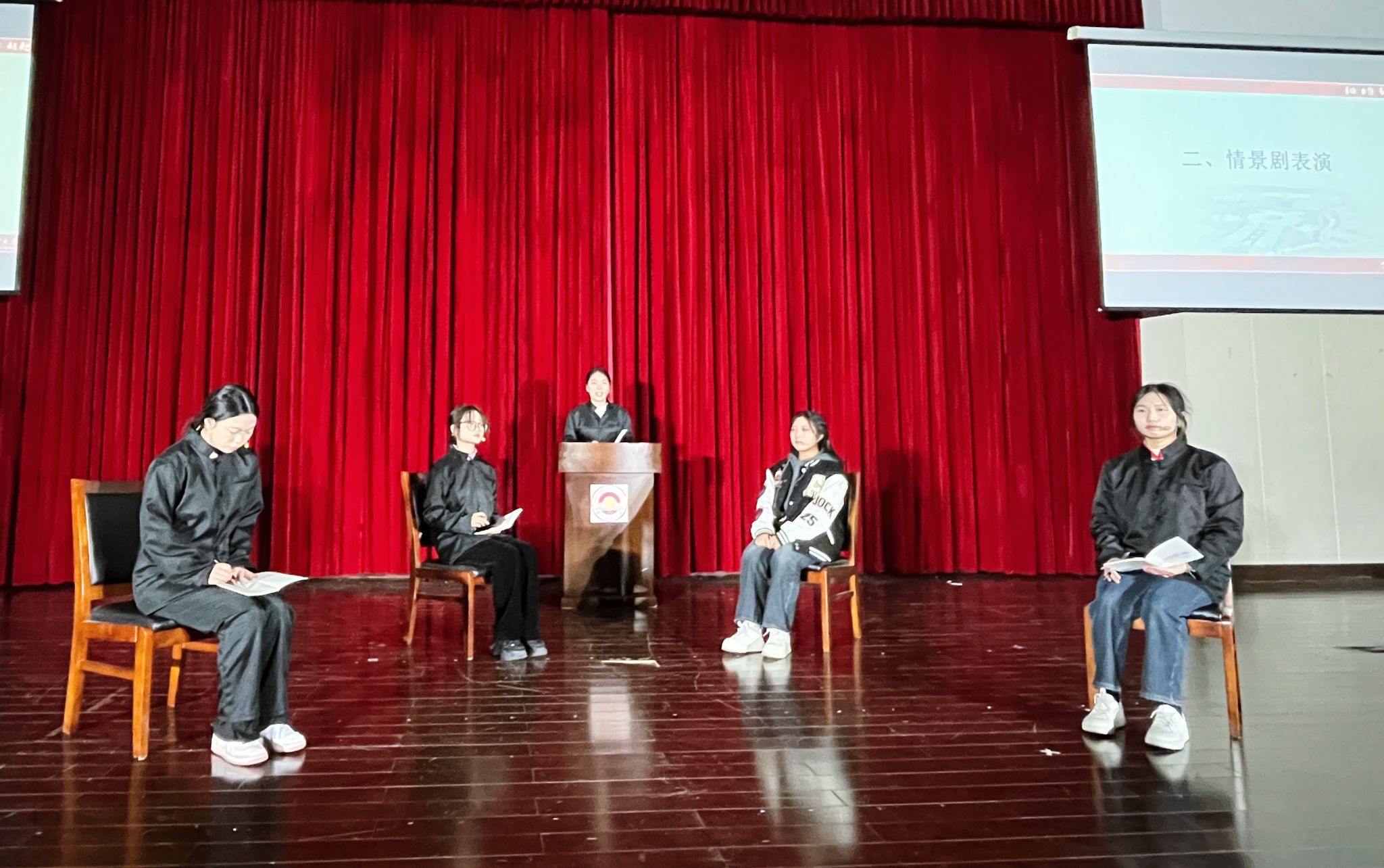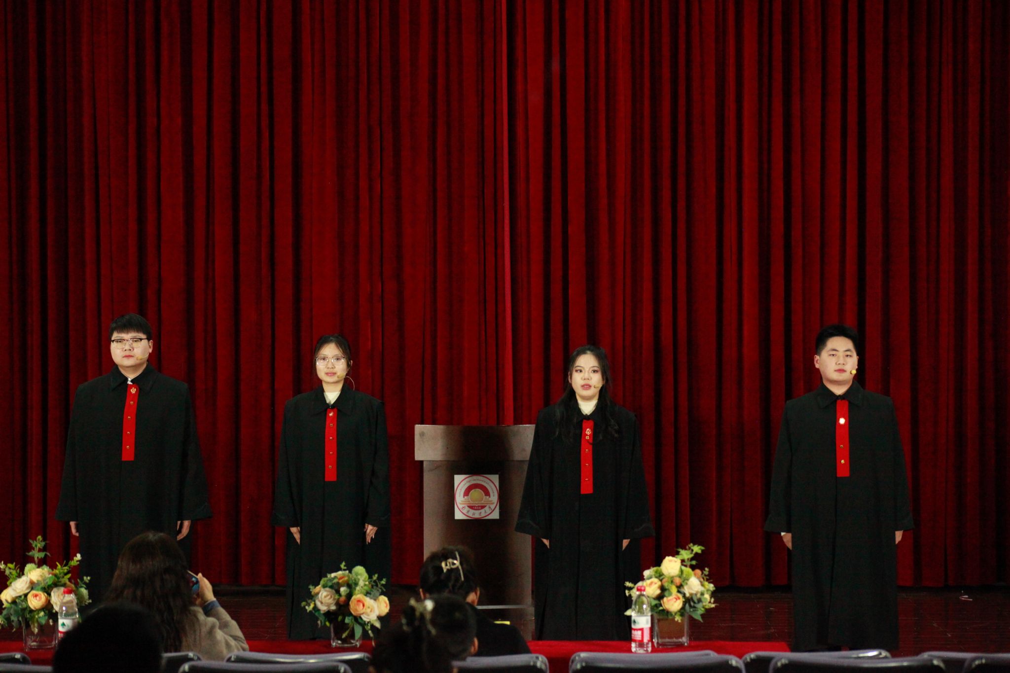 朗诵《致法律人》,“以法为剑,斩断不公的锁链,以法为盾,守护公正的家园”。法律工作者以凡人之躯,建立起庇佑万民的法制体系。挥法律之利剑,持正义之天平,表达了同学们对广大法律工作者的崇高敬意。