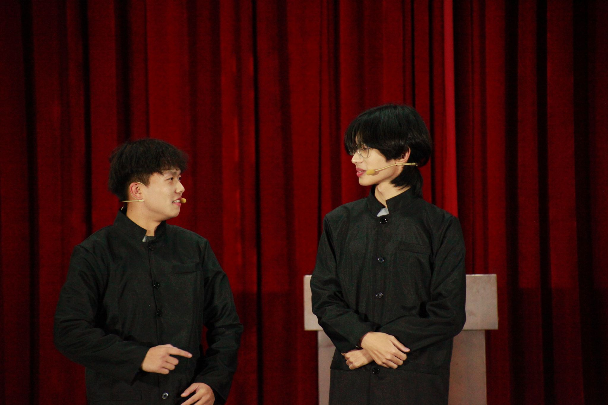 相声《如此普法》,两位同学一捧一逗,谈笑间不仅体现出我校学生优秀的法律素养,更以一种幽默的口吻将权利与义务、秩序与和谐的真谛一一道出,愈发地坚定了同学们建设法治社会的信念。