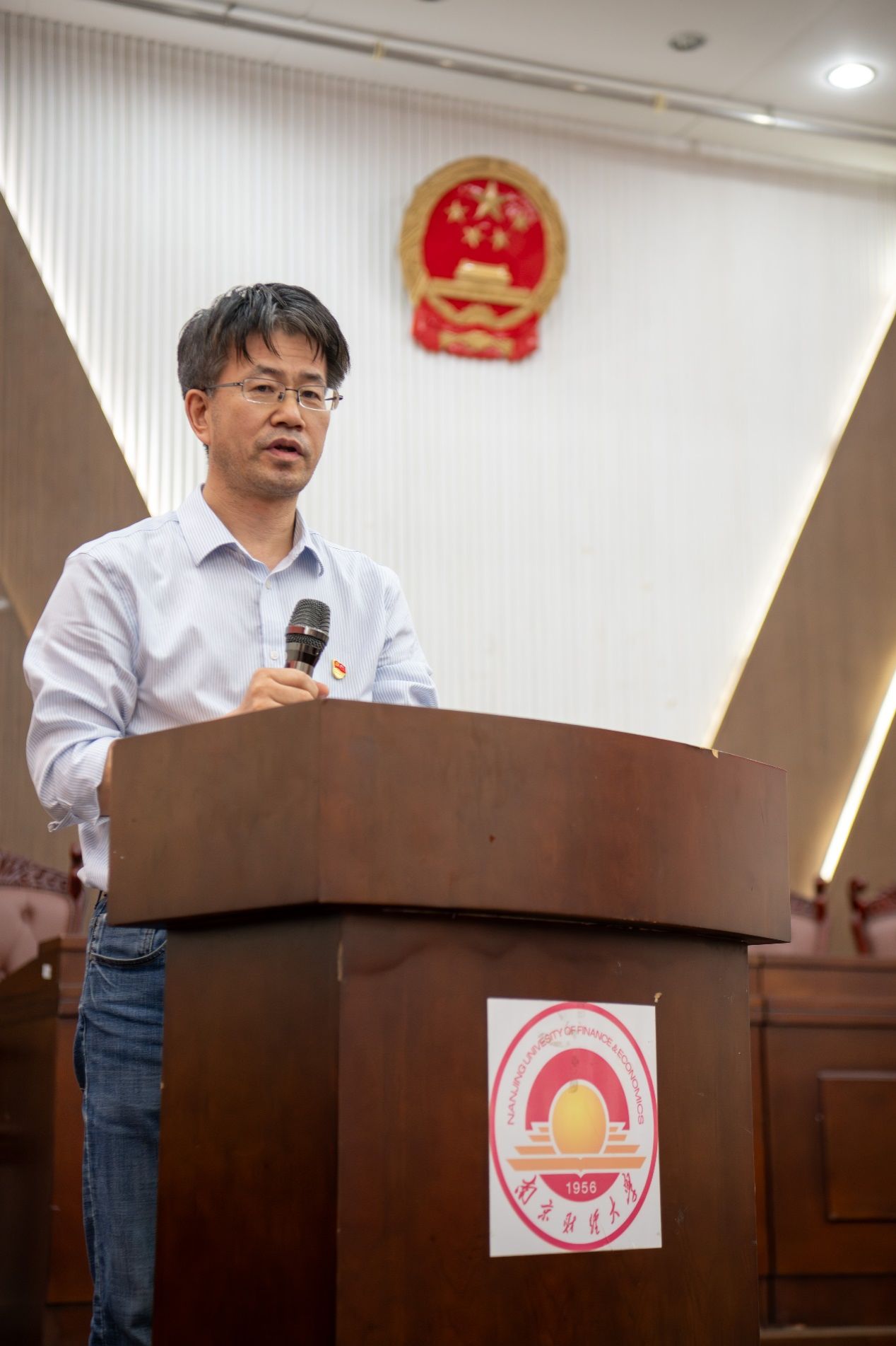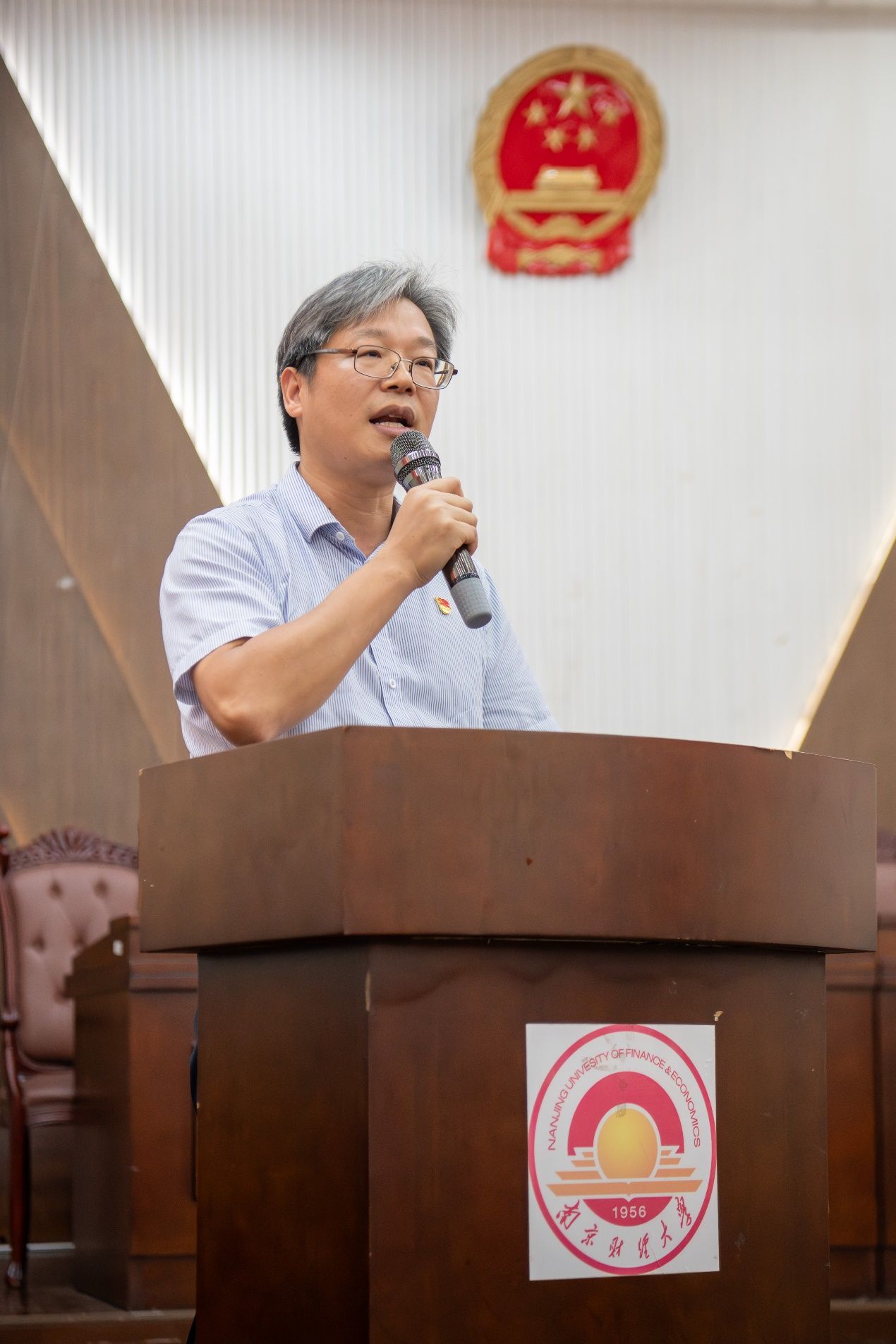 随后,蔡养军副院长以“人生的南财站”为喻,引导新生思考大学规划的意义。他提出关于人生方向、专业与通识、理想与现实的三重追问,鼓励同学们善用学校资源,在课程学习、科研竞赛与社会实践中全面提升自我。