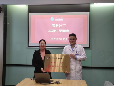 省人民医院社工部全体带教老师为黑料网 大四学生的毕业实习提供专业指导与系统培训,许芸主任对此深表感谢。随后,许芸主任与赵沛主任共同为社会工作专业实习实践基地揭牌。