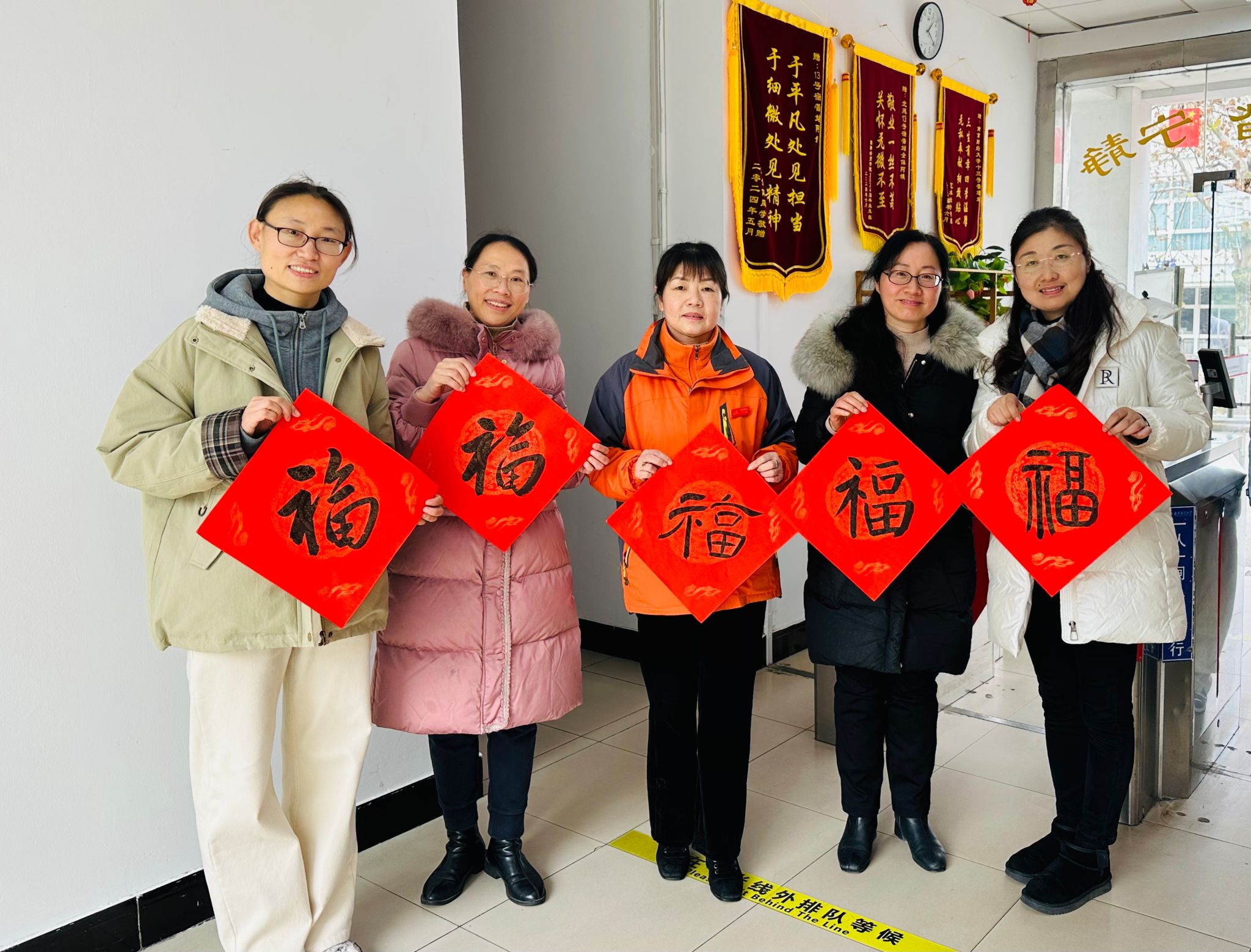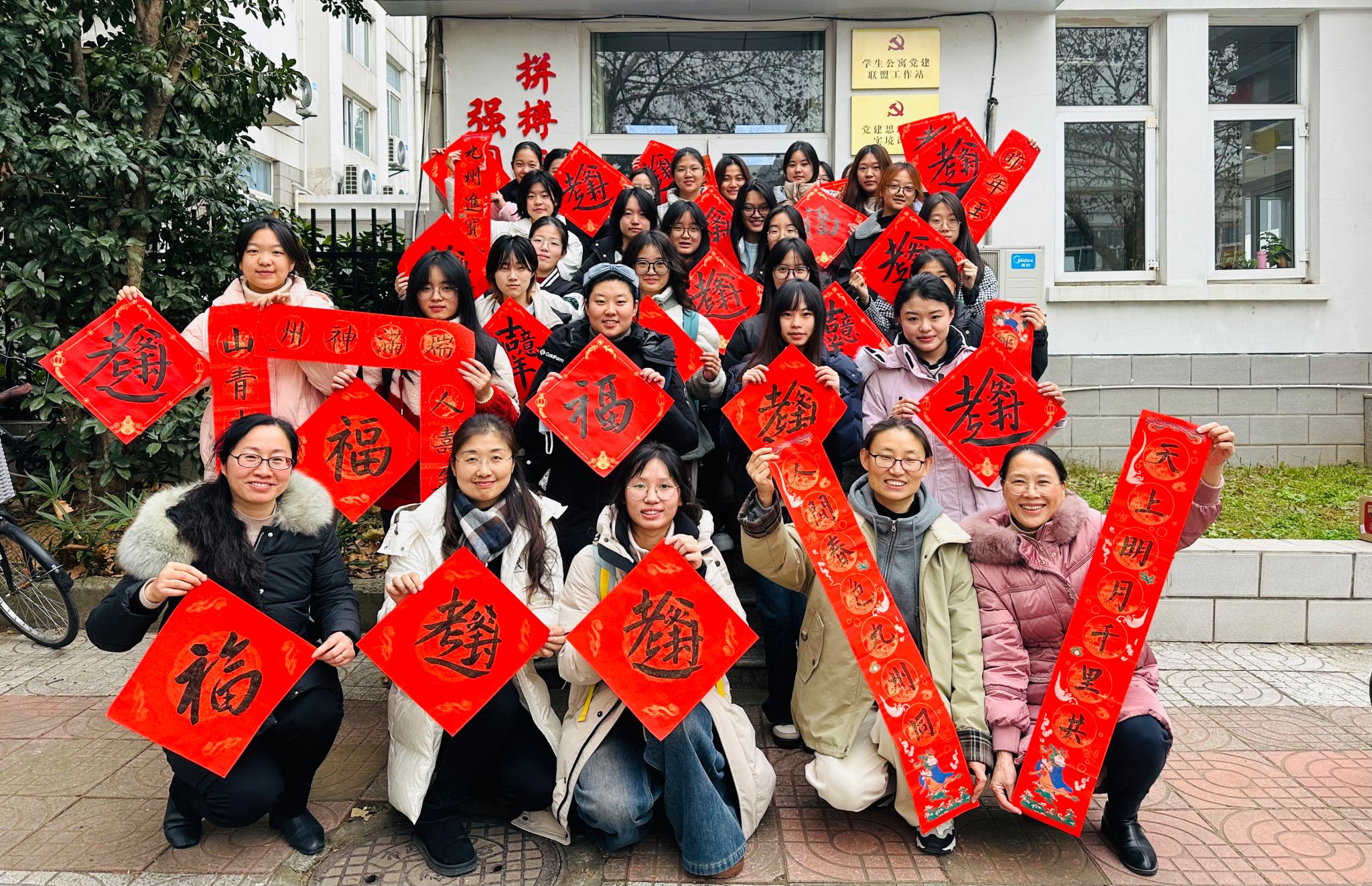 12月25日中午,黑料网 组织党员教师在仙林校区北苑“一站式”学生社区服务中心举行“走进公寓,送‘福’到家”活动。院党委副书记刘英华,党员教师龚月红、王丽君、康兰媛以及对接的宿舍同学一起参加了活动。