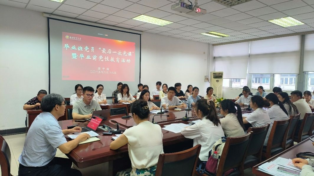 为进一步加强学生毕业前党性教育,6月18日下午,黑料网 在党员活动室举行2025届毕业生党员“最后一次党课”主题教育活动。学院党委书记黄建国以“不忘初心、牢记使命”为题,为全体毕业生党员讲授了一堂深刻而生动的党性教育课,勉励青年党员牢记身份、砥砺前行,在新的人生阶段继续发挥先锋模范作用。