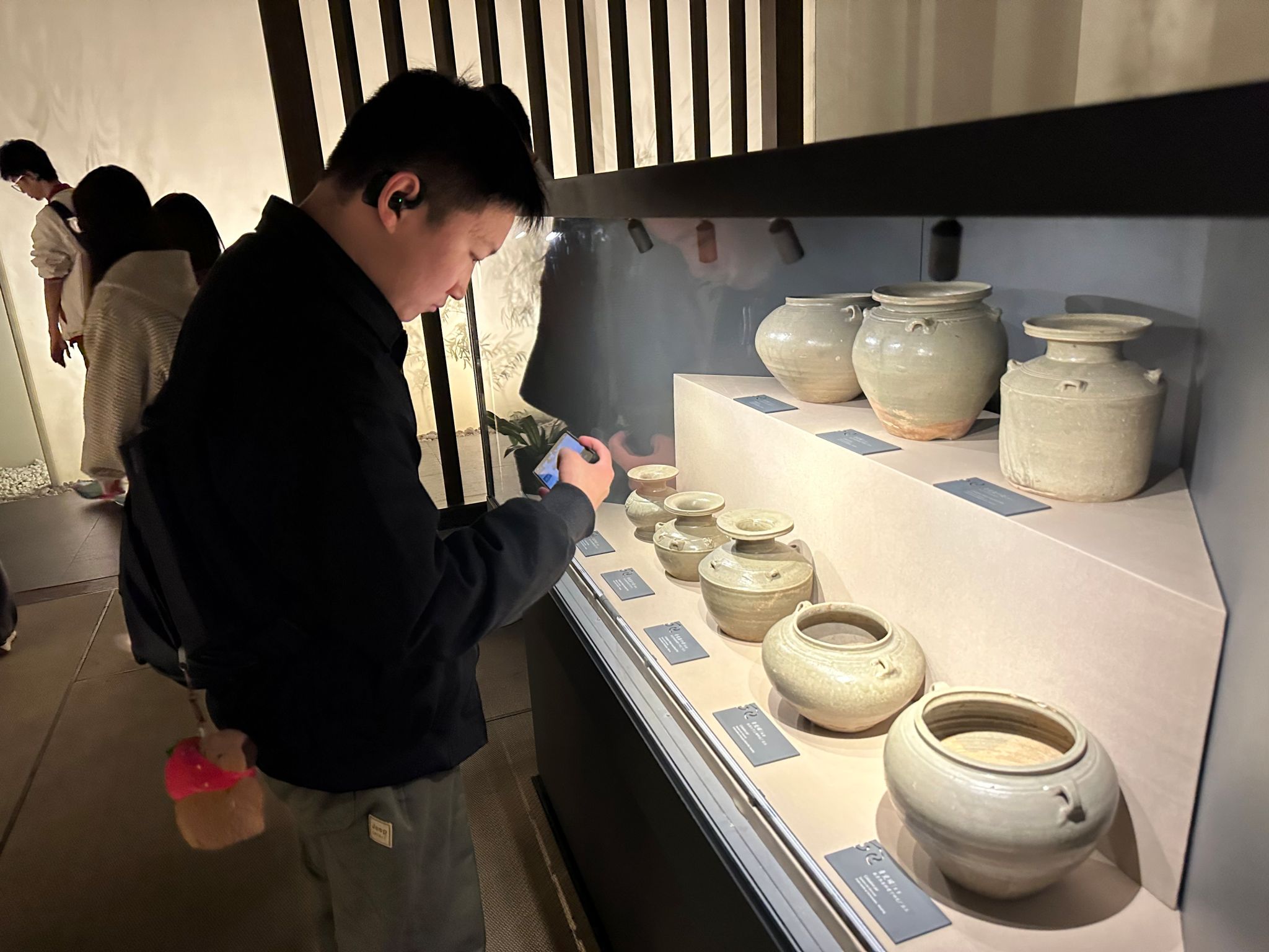 走进“六朝风采”展厅,书法与绘画作品成为当之无愧的“主角”。展厅内陈列的王羲之《兰亭集序》(摹本)、顾恺之《洛神赋图》(局部摹本)等珍贵文物复制品,让同学们近距离领略了“书圣”“画祖”的艺术风范。在展厅中央,一件造型古朴的青瓷莲花尊格外醒目,其温润的釉色、精美的莲花纹饰,展现了六朝时期青瓷烧制工艺的巅峰。同学们在欣赏艺术之美的同时,更深刻理解了六朝文化对中国传统文化发展的深远影响。