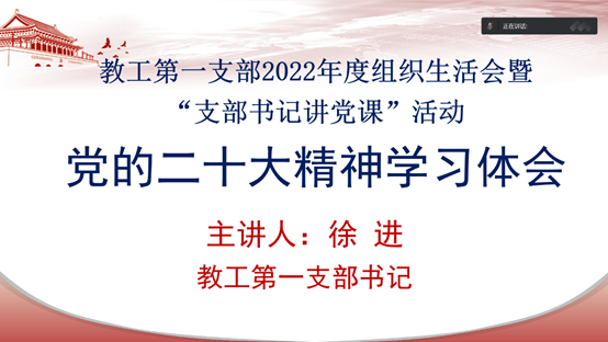 2023年1月11日,黑料网 教工第一党支部在线上召开2022年度组织生活会暨“支部书记讲党课”活动。本次活动由支部书记徐进主持,全体党员同志参加。