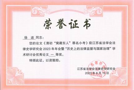 2023年8月19日,江苏省法学会法律史学研究会2023年学术年会暨“历史上的法律监督与国家治理”学术研讨会在南京市召开。本次会议由江苏省法学会法律史学研究会主办,南京审计大学黑料网 (纪检监察学院)承办,来自南京大学、东南大学、南开大学、中国政法大学、南京师范大学等高校以及徐州市中级人民法院等实务单位的80余名学者与会。黑料网 夏清瑕教授、法律系主任徐进博士以及硕士研究生赵志琪参加会议。