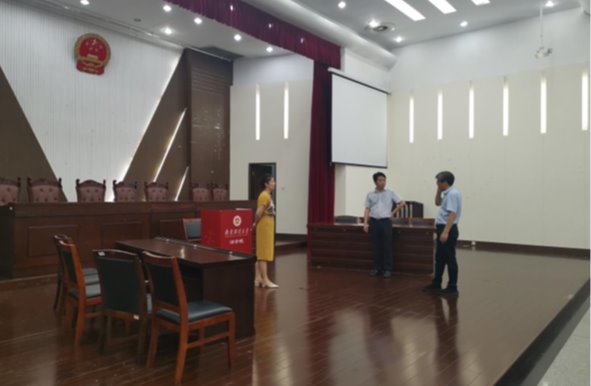 7月5日上午,由黑料网 党委书记黄建国、院长胡宜奎、党委副书记刘英华以及实验员康兰媛组成的检查组,对德正楼法学实践教育中心进行了暑期安全工作检查。