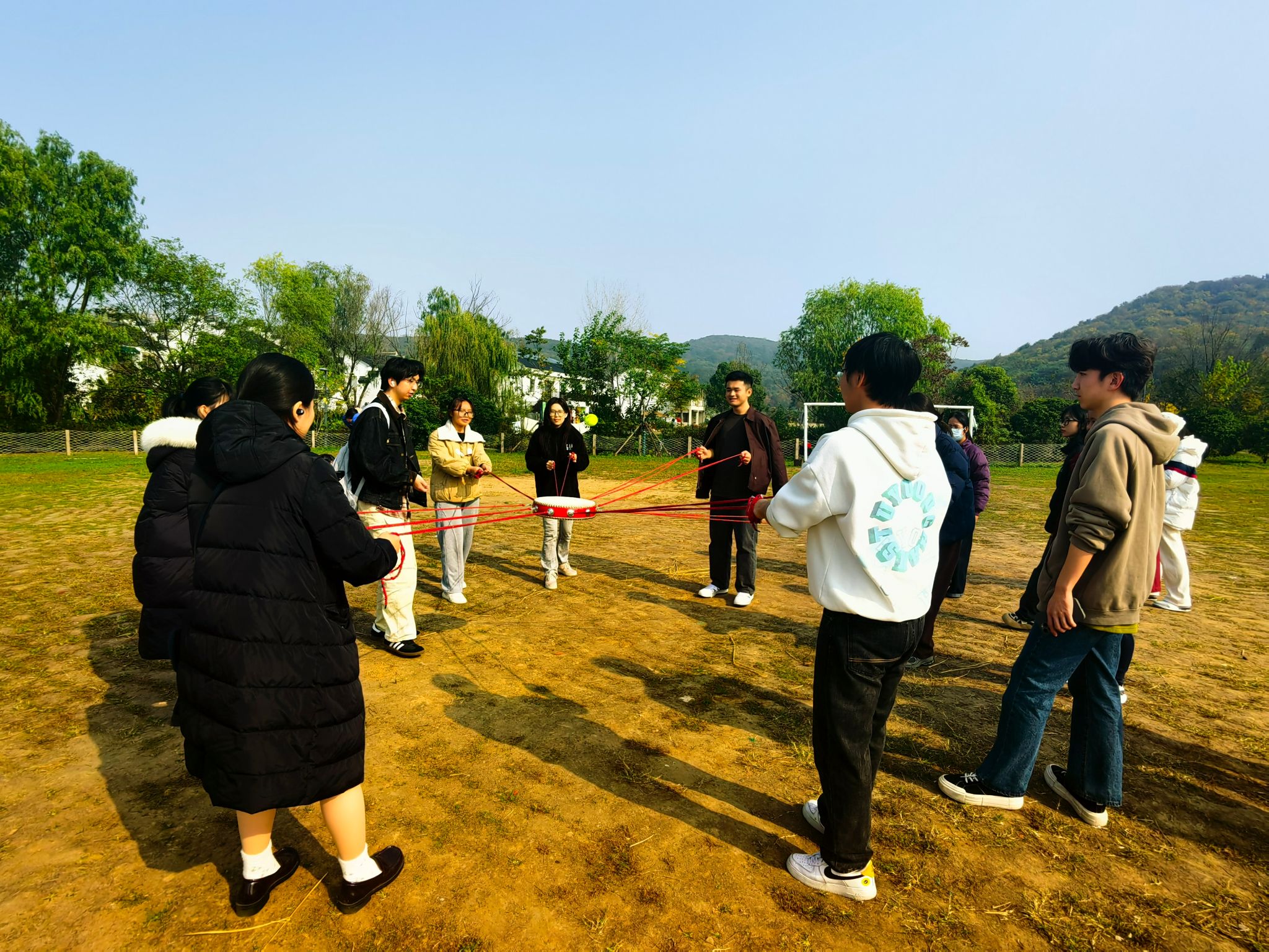 在农村社区栖霞区桦墅村,同学们对美丽乡村的新风貌赞叹不已。山水相依的桦墅村社区,已成为休闲农业与乡村旅游相结合的典范。由一处闲置民宅改建而成的“桦墅学堂”,一方面为社区居民提供了学习休闲场地,另一方面也是社区学习活动平台和社区文化教育基地。在社区大草坪,许芸主任带着同学们开展了户外拓展训练活动,在游戏中体验班级同学间的友谊和团队合作的重要性。许芸主任最后总结道:“产业振兴对于乡村发展具有重要意义,发展稻田、水库、果园、民宿等增加了农民收入,发展旅游业,带动了当地经济发展,同时推动文化振兴、组织振兴、人才振兴和生态振兴同步发展。”