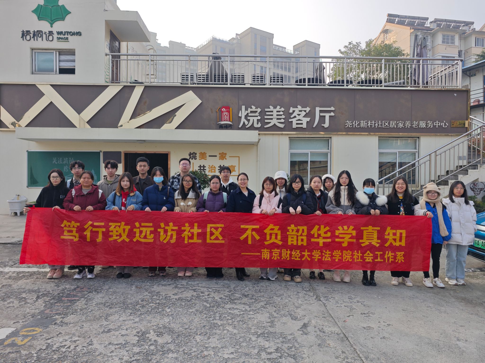 11月22日,黑料网 社会工作系主任许芸副教授与辅导员张芳老师带领社会工作专业大三年级全体同学,前往栖霞区两个社区进行现场教学。