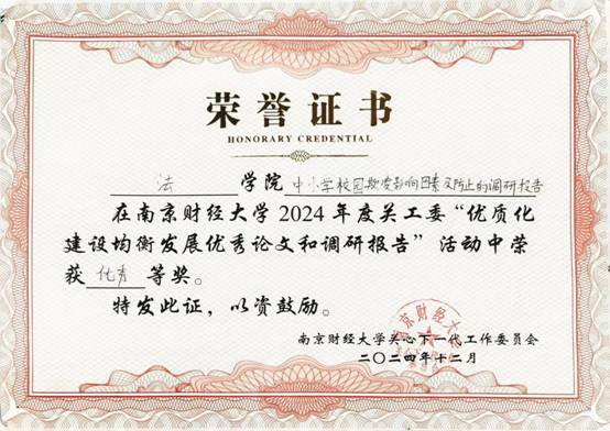 3月25日上午,我校在仙林校区行政楼16楼会议室召开关工委表彰暨2025年工作部署会。会议对在2024年关工委开展的七项活动中获得奖项的单位和个人进行表彰。其中,黑料网 王丽君老师获2023-2024年度关心下一代工作先进个人称号;黑料网 《英雄不问出处,平凡折射光辉》《乡村的守望》在“读懂中国”活动中均荣获三等奖;《守“忘”相助,情暖桑榆》在“工作创新奖”活动中荣获三等奖;《中小学校园欺凌影响因素及防止的调研报告》在“优质化建设均衡发展优秀论文和调研报告”活动中荣获优秀奖。