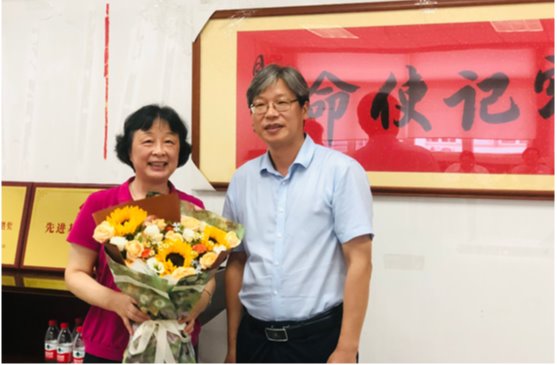 院长胡宜奎、院党委副书记刘英华代表学院对已光荣退休并受邀关心青年教师和学生成长的李宁、徐文超两位教授表示热烈欢迎和衷心感谢,并敬送鲜花。