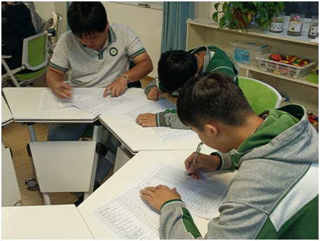 本次活动由四部分组成:“谁是卧底”“MBTI性格测试”“生涯畅想”以及“期待再相见”。活动伊始,项目组成员帮助小组成员回忆上次活动的内容,更好地衔接了前后两次活动,小组成员也更深入地投入到活动中。在“谁是卧底”活动中,小组成员拿到自己的职业身份并进行描述,根据大家的描述找出“卧底”,在活跃气氛的同时,让小组成员体会到不同职业的不同特点以及相近职业的不同特点。在“MBTI性格测试”的环节中,小组带领者详细地介绍了测试题填涂注意事项,小组成员认真地填涂完毕,并根据提示得到了自己的MBTI类型,大家热烈地讨论不同类型人格的特点以及适合的职业。在“生涯畅想”环节中,小组成员积极畅想自己五年后、十年后以及二十年后从事的工作。最后,通过总结,小组成员大大加深了对自身的认识和对职业的了解,对未来自己可能从事的职业有了更清晰的认识。