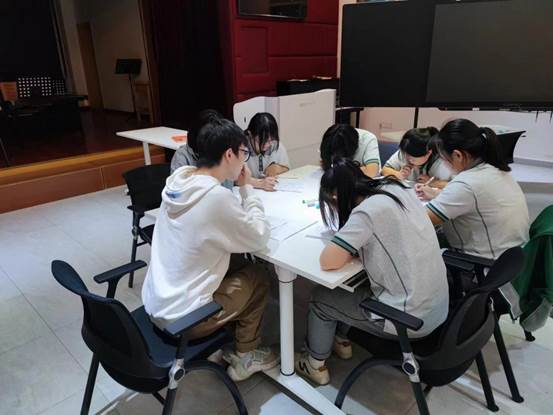 在小组活动的最开始,项目团队成员向大家进行了自我介绍和项目介绍。第一次小组活动由“热身游戏”“制作名片”“小组契约”三部分组成。为了活跃大家的气氛,项目团队成员带领大家进行了反字热身游戏,游戏过程中一些小组成员各自表演了一些才艺。紧接着,在项目团队成员的带领下各位组员一起学习与制作自己的席位卡与绘画小组的海报,一起商量确定小组的名字、口号等,并且制定了小组契约作为小组成员在活动中都需要遵守的规则。为了激发小组成员的各自的主观能动性,项目团队成员鼓励各位组员还写下了小组结束后期待完成的事。最后,小组成员们填写了本次活动的过程评估表。第一次小组活动在同学们欢乐的气氛中顺利、圆满结束了。