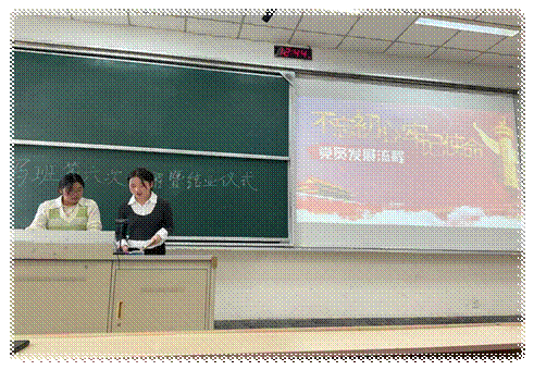 院本科生党支部副书记闫陈陈补充发言,就入党积极分子的近期任务作了提醒。她表示,各位被确定为积极分子满一年的学员要做好上党课的准备,季度思想汇报应及时书写。她还强调了党员材料审核的严格性和规范性,并以此提醒各位积极分子引起高度的重视。