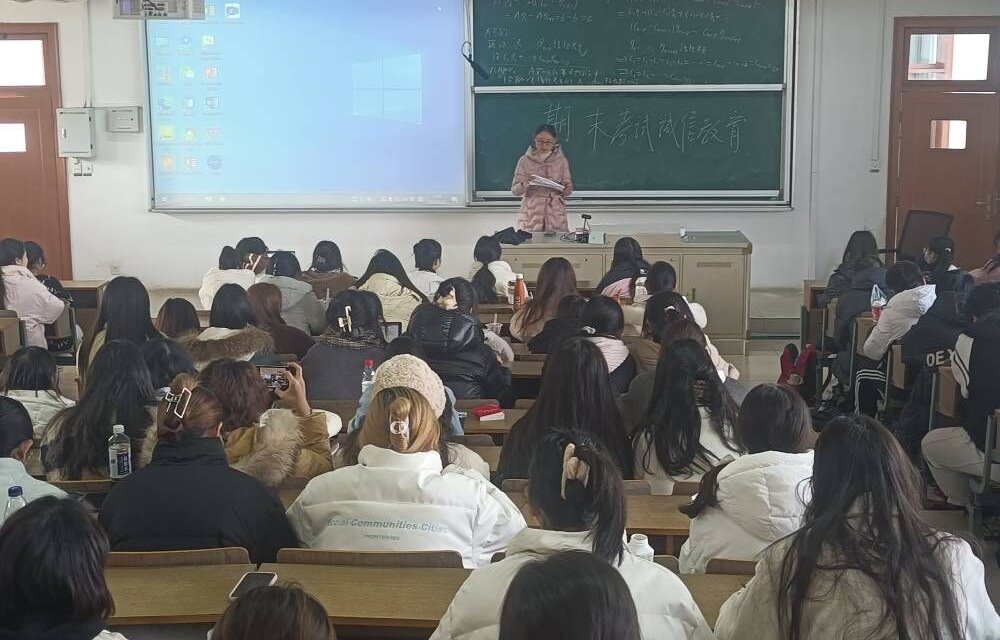 张芳和王丽君老师提醒大家在保持高涨学习热情的同时,一定注意劳逸结合,张弛有度。她们强调了考试违纪、作弊的认定和后果,希望大家考出真实成绩,并提供了补考、重修等多种帮助考试通过的途径,倡议同学们“绵绵用力,久久为功,适当突击,强化记忆”,并尽可能地利用寒假时间进行专业实习实践。