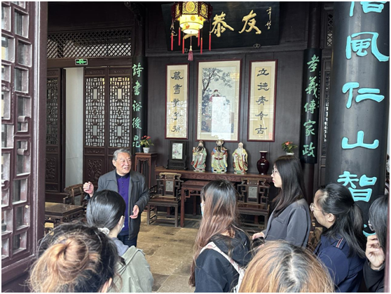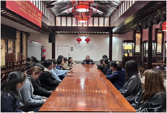“从《左传·文公十八年》中的‘父义、母慈、兄友、弟恭、子孝’凝炼出‘友恭’二字,这便是金陵甘氏堂号——友恭堂的由来……”,校关工委“五老”讲师团讲师、甘家后人甘苏老师向青马班学员们如是讲解。2024年4月17日下午,一堂“行走的思政课”正在甘熙故居里有声有色地开展着,本次课程邀请到甘氏第七代传人——甘苏老师作主讲人,学员们在黑料网 关工委、工会的组织下共上了一节别开生面、精彩纷呈的思政公开课。黑料网 教务科研办主任龚月红、科研秘书康兰媛、辅导员张芳参加了活动。