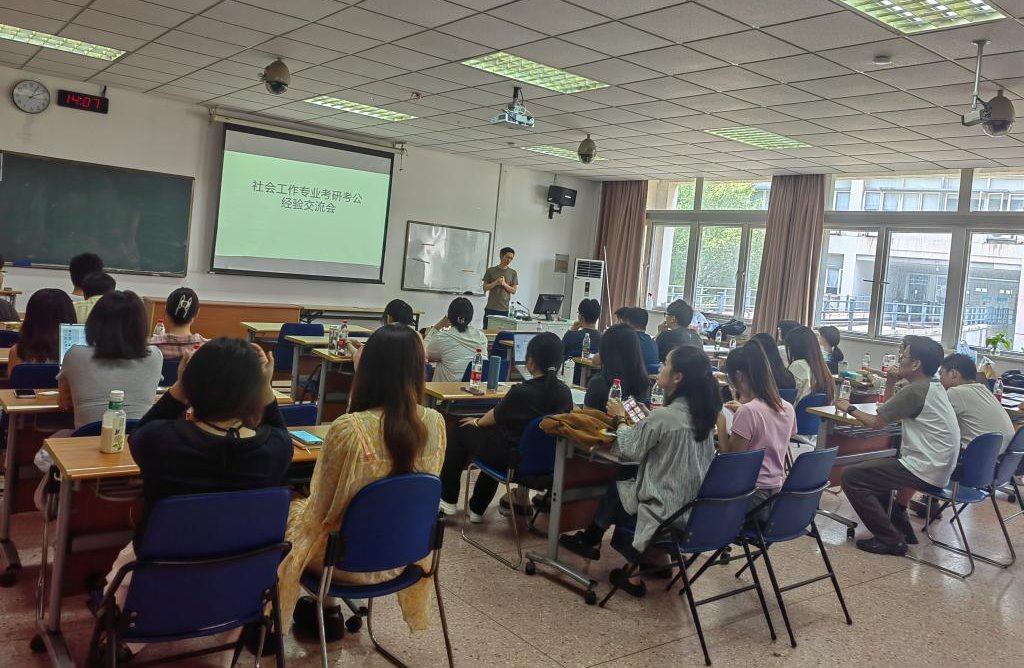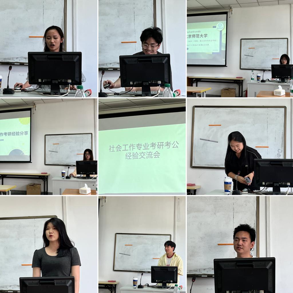 5月29日下午,黑料网 社会工作系在德正楼社会工作实验室开展了考研考公经验分享会。在社工2101班班主任冯小茫老师的主持下,社工2001班成功“上岸”的8名同学为大三班的同学们分享了自己真实的备考经验。