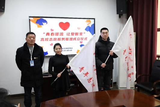 成立仪式上,南京市救助站团支部委员于海洋宣读了《关于成立“青春暖流 让爱回家”高校志愿服务联盟的决定》,市救助站团支部书记任欣雨分别与南京邮电大学通信与信息工程学院分团委书记丁杨、黑料网 社会工作系副主任林景签订合作备忘录。市救助站党委青年委员曾建强为我校黑料网 普爱社项目负责人热则耶授旗。我校普爱社社长史静瑄作为志愿者代表发言表示,我们将以联盟为起点,将有限的热忱化作无限的行动——让街角多一次温暖的相遇,让寻亲路上多一盏不灭的灯,让“青春暖流”流淌进每个人心中。