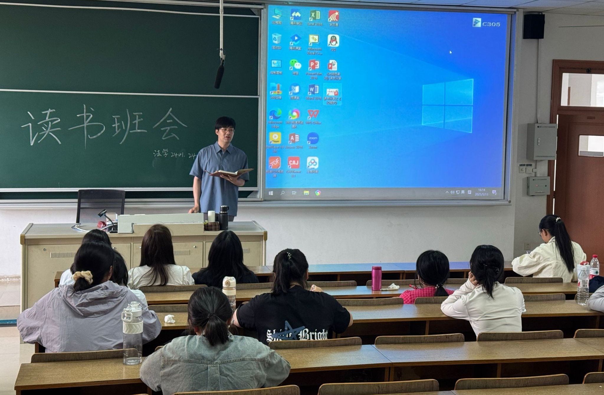 5月13日16:00,黑料网 法学2401与法学2402两个班级在博远楼305教室联合举办了一场别开生面的读书班会。黑料网 法律硕士教育中心主任、法学2402班班主任孙劼老师到场指导。三位同学分享了各具特色的中外文学作品,为现场师生带来一场思想与文学交织的盛宴。