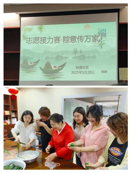 活动当日,标营社区党群服务中心早早布置一新,“雷锋传人在标营”的红色横幅格外醒目。在社区党委的统筹下,黑料网 社工志愿者与“雷锋传人志愿服务先锋队”的军嫂志愿者、青少年志愿者等30余人协同合作,围绕端午民俗体验、社区群体关怀、社区文化共建三大板块展开行动。