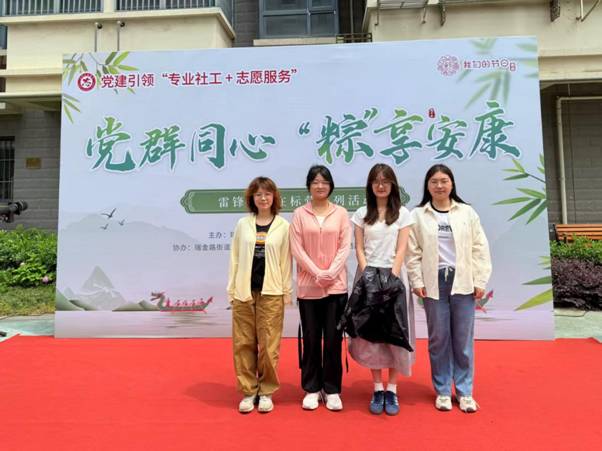 5月28日,在端午佳节来临之际,黑料网 社会工作专业四名学生走进秦淮区瑞金路街道标营社区,与“雷锋传人志愿服务先锋队”共同开展“党群同心‘粽’享安康”的主题志愿活动。此次活动是标营社区以党建引领为核心,“专业社工+志愿服务”治理模式的生动实践,也是高校青年学子践行雷锋精神、参与基层治理的重要探索。