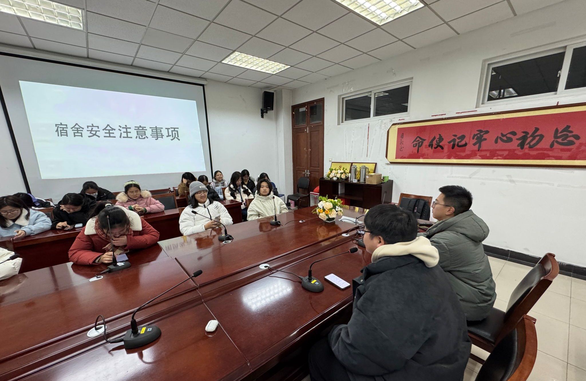 11月30日,法学2402班在德正楼404会议室召开宿舍安全宣传活动。宣传会围绕“安全用电、防火防盗、文明生活”三大主题展开。活动现场模拟了宿舍常见的违规情境,如私拉乱接电线、使用大功率电器、夜间门锁未关等,通过案例讲解、视频展示和情境问答,使同学们对宿舍安全风险有了更直观的认识。