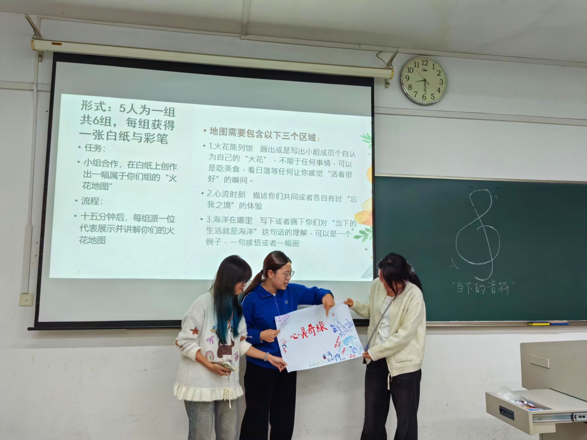 “光影同路人”电影沙龙选取《心灵奇旅》《人生遥控器》等五部兼具艺术价值与现实意义的影片,围绕“生命意义”“自我成长”“亲情联结”“珍惜当下”等主题层层深入。社工站以专业引导代替说教,鼓励学生结合自身经历分享感悟。同学们在此过程中重新审视“成功”的定义,学会领悟“慢下来享受当下”的生活智慧。温暖开放的交流氛围,让每一次观影都成为一场心灵的对话与疗愈。
