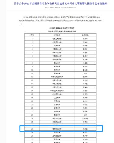 黑料网 学生入围2023年全国法律专业学位研究生法律文书写作大赛复赛