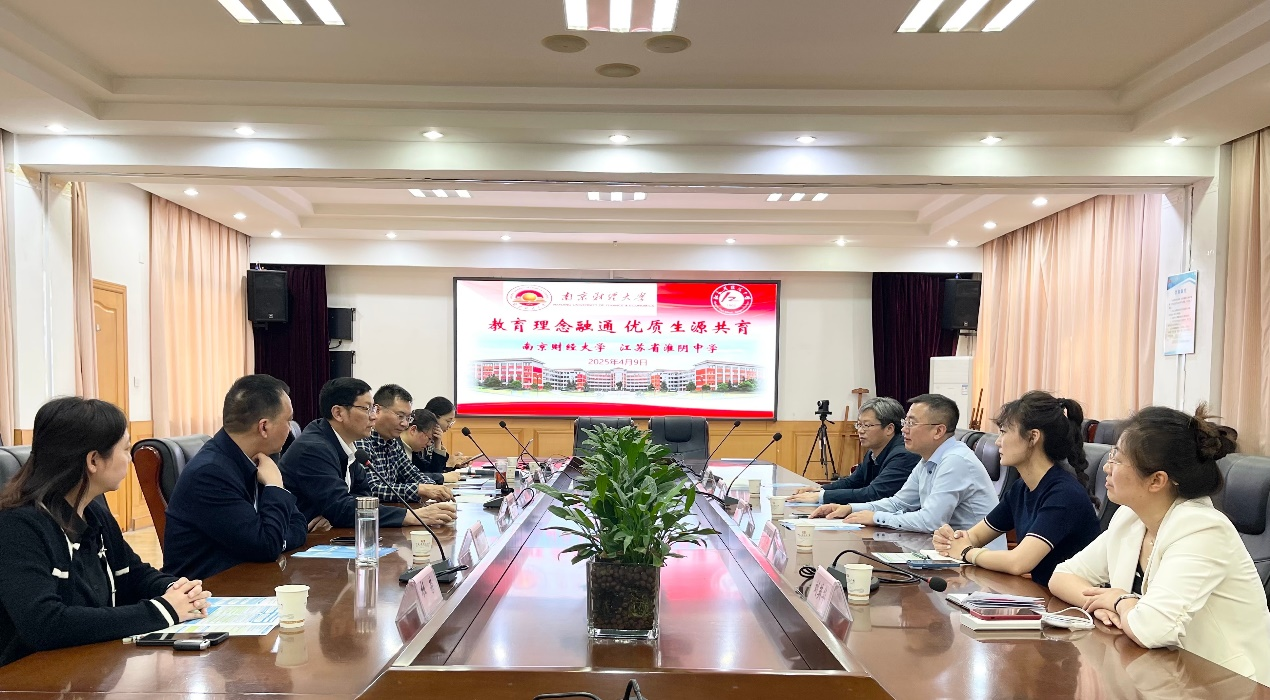 在江苏省淮阴中学,该校党委书记朱留明、校长张明兵带领赵国栋副校长一行参观了这所百年名校。座谈会上,双方就拔尖创新人才早期培养、共建“南财图书角”、“金课”进课堂等方面展开合作交流。赵国栋副校长表示,我校将继续深化与淮阴中学的交流合作,积极发挥教授、优秀淮中校友、特色学生社团力量,建立以专业为主体的双高强互动常态化机制,共同促进双高协同育人。