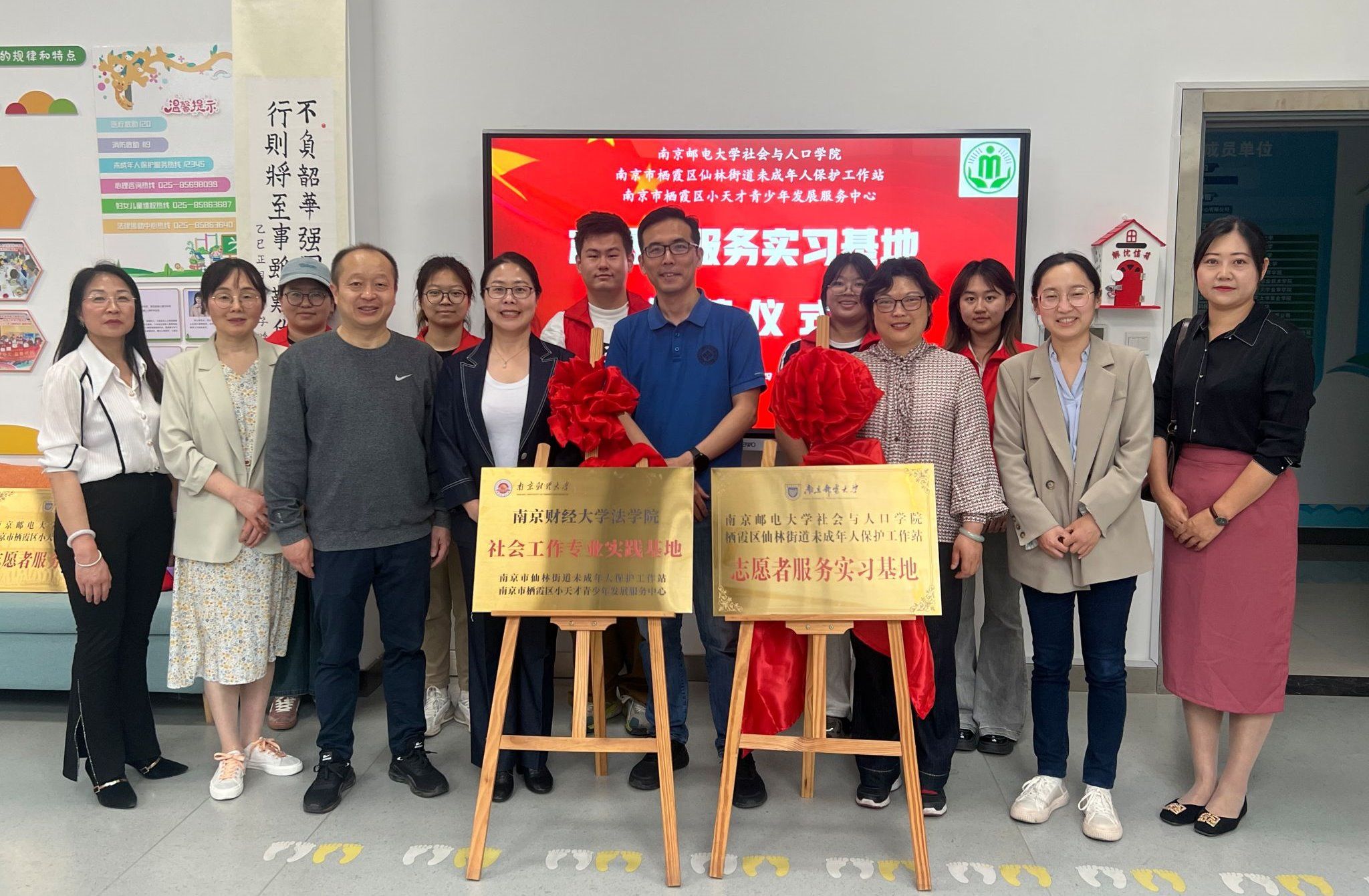 为深化校地合作共建,推动社会工作专业人才培养,4月24日下午,黑料网 与仙林街道未成年人保护工作站、栖霞区小天才青少年发展服务中心在仙林街道党群服务中心举行社会工作专业实践基地揭牌仪式。黑料网 社会工作系主任许芸副教授与仙林街道民政办王祝霞主任共同为基地揭牌,南京邮电大学社会与人口学院同步设立志愿者服务实习基地。