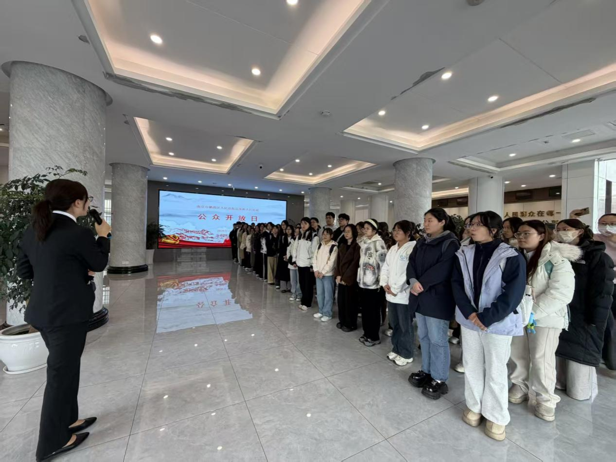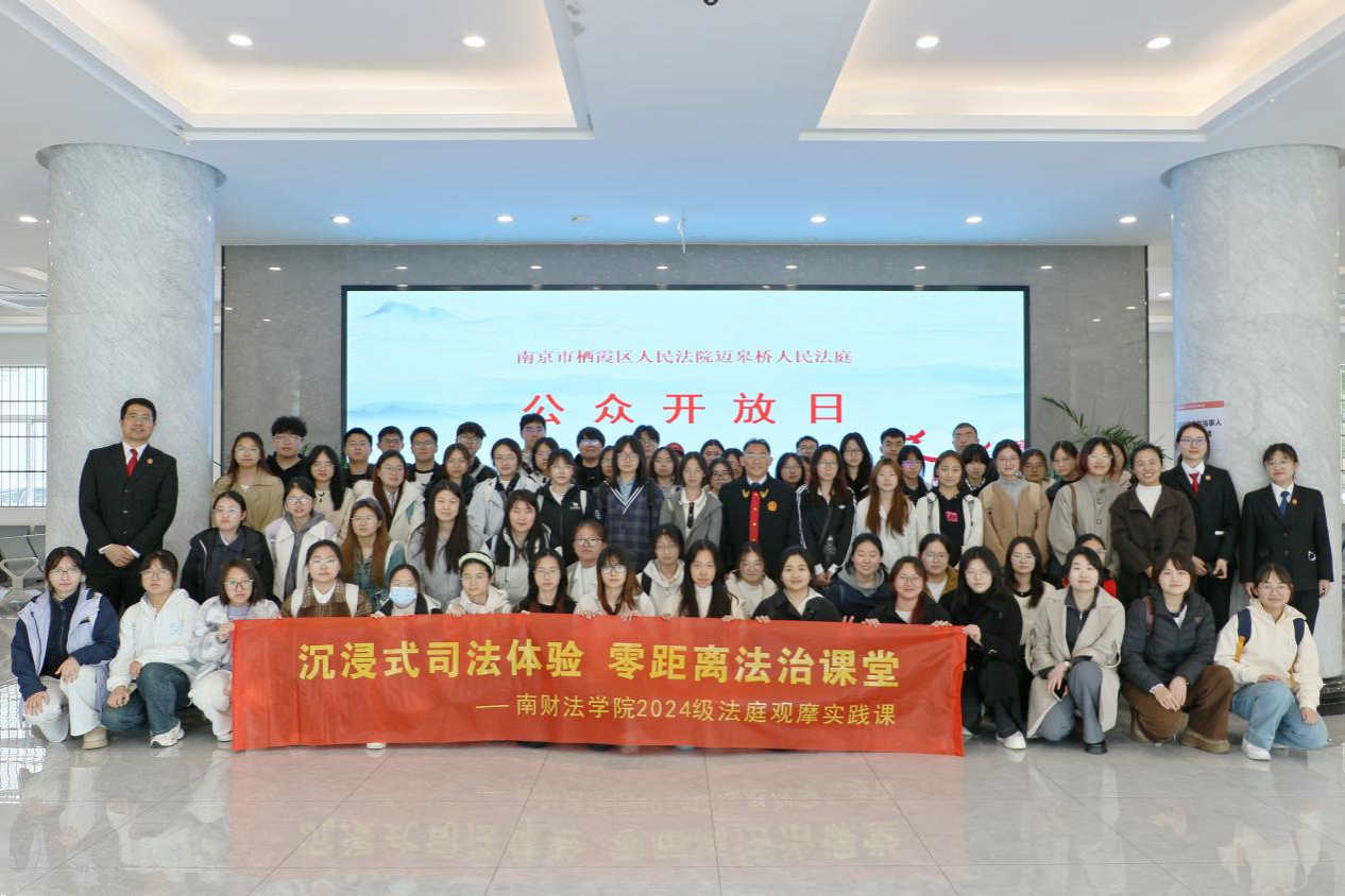 4月23日下午,黑料网 2024级66名“民事诉讼法”课程学生,在李蔚老师带领下,走进南京市栖霞区迈皋桥人民法庭,开展“参观+旁听+课堂”沉浸式实践教学活动。本次活动紧扣课程实践要求,打通法学理论与司法实务的衔接通道,助力学生提升实践能力。