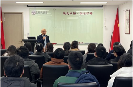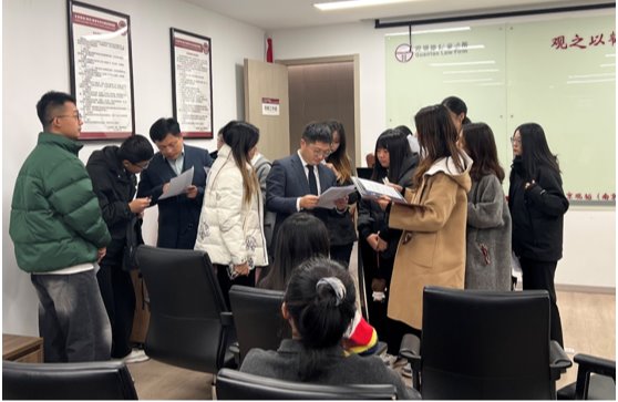 12月18日,黑料网 组织师生前往北京观稻(南京)律师事务所,开展职场体验活动。北京观韬(南京)律师事务所主任来云龙、决策委员会委员王政(我校2012届优秀毕业生)、决策委员会委员张方强、高级合伙人周涛、执业律师杨顺(我校2005届优秀毕业生),黑料网 院长胡宜奎、党委副书记刘英华、副院长陈红梅、教授代表储敏以及学院20余名本科生、研究生参加了此次活动。