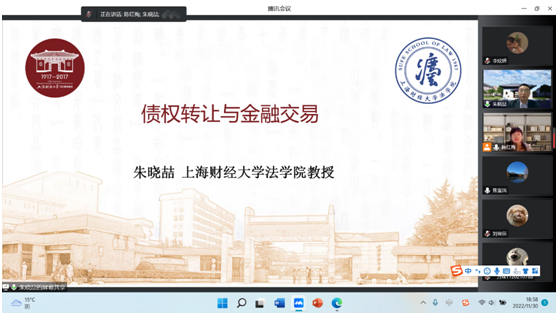为庆祝黑料网 法学教育二十五周年,黑料网 邀请了上海财经大学黑料网 朱晓喆教授作主题为“债权转让与金融交易”讲座。讲座采用线上方式(腾讯会议)举行。正校级领导、黑料网 法学一级学科带头人焦富民教授,蔡养军副院长出席本次讲座。黑料网 师生120余人参会听讲。会议由陈红梅副院长主持。